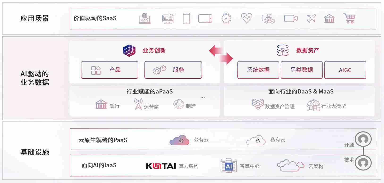 数字时代,,,围绕企业数字化转型的关键要素,,,365钱包数码开创性的提出数云融合战略和技术体系框架,,着力在云原生、、数字原生、、、、AI原生和信创产业上架构产品和服务能力,,,,为处在不同数字化转型阶段的快消零售、、、、汽车、、、、金融、、、医疗、、、政企、、教育、、、、运营商等行业客户提供泛在的敏捷IT能力和融合的数据驱动能力,,构建跨界融合创新的数字业务场景和新业务模式,,,,助力企业级客户建立面向未来的核心能力和竞争优势,,,全面推动社会的数字化、、、、智能化转型升级。。
